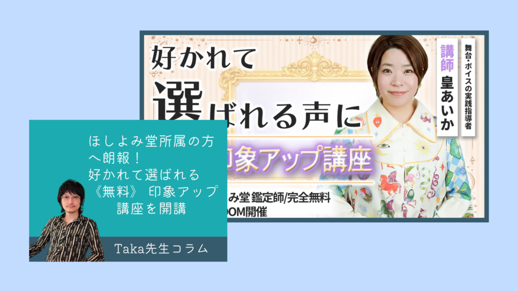 ほしよみ堂所属の方へ朗報! 好かれて選ばれる《無料》 印象アップ講座を開講