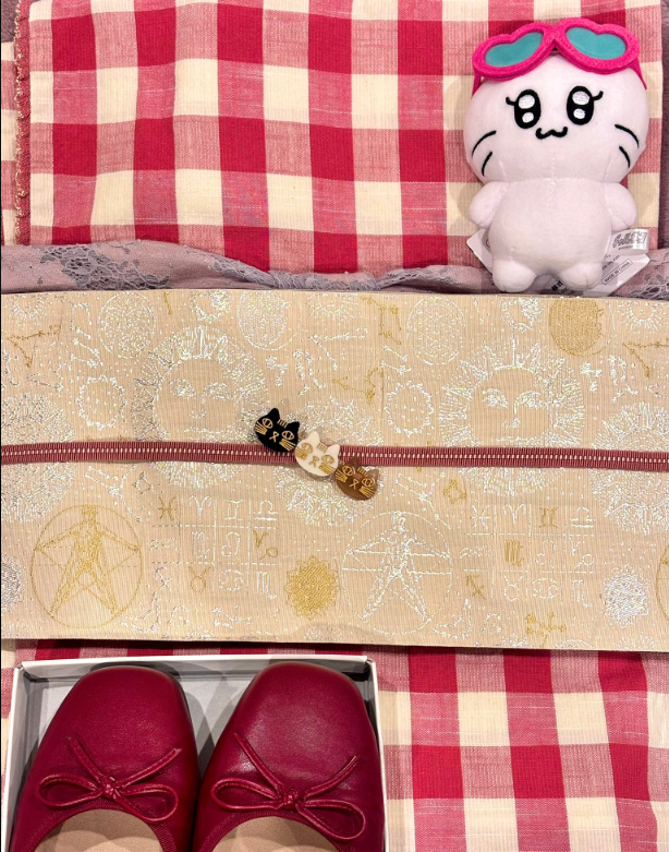 今日は大好きな赤白格子柄の片貝木綿に、